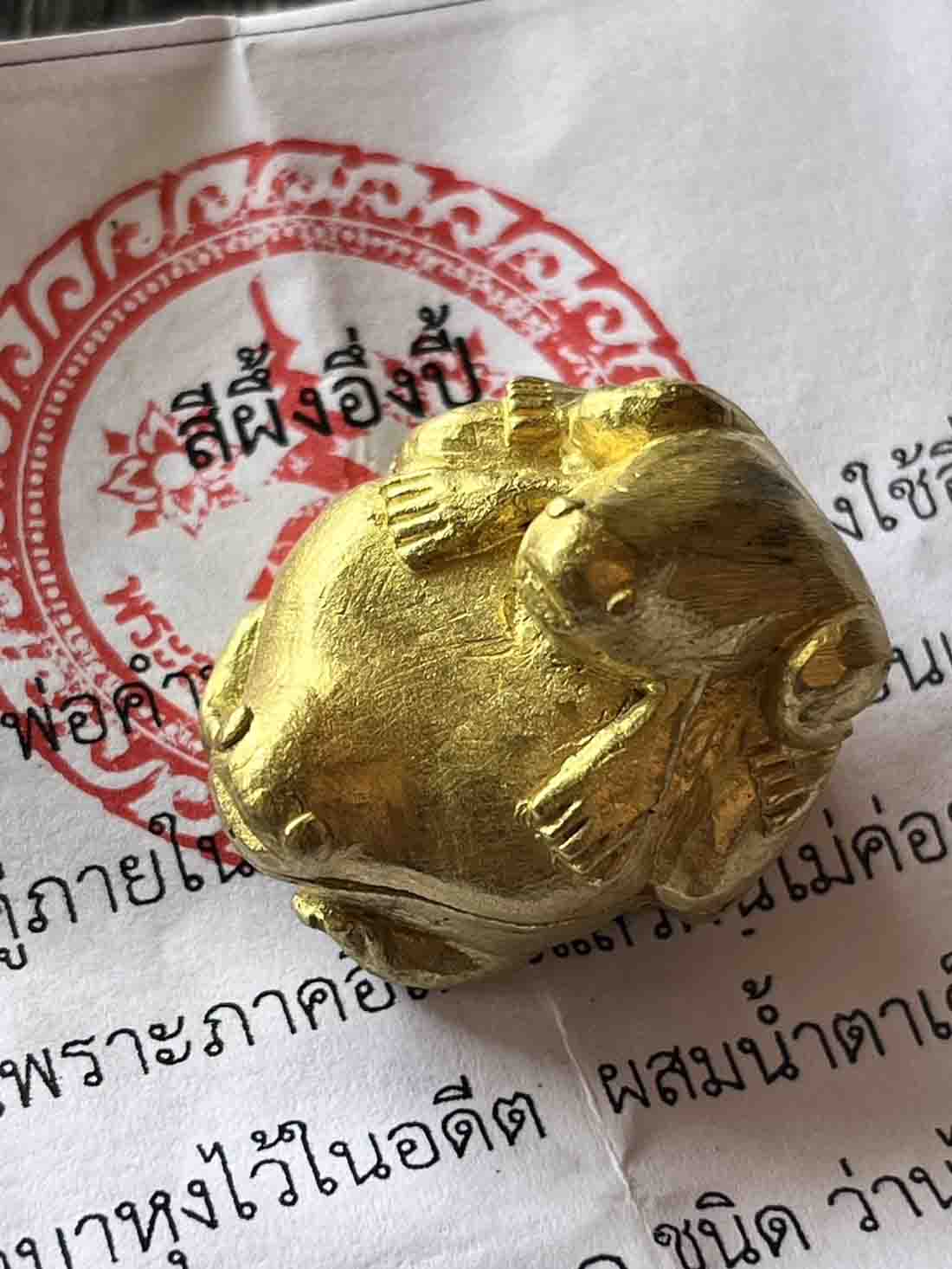 | | [ ชื่อพระ ] สีผึ้งอึ่งปี้ (ญาครูโขง) วัดป่าอุณาโลม | | [ รายละเอียด ] "สีผึ้งอึ่งปี้" (ตลับโลหะทองผสมหล่อขึ้นรูปอึ่ง) พระอาจารย์โขง ปิยธมฺโม (ญาครูโขง) วัดป่าอุณาโลม(โนนค้อ) อำเภอจตุรพักตรพิมาน จังหวัดร้อยเอ็ด ... พระอาจารย์ได้จัดสร้างขึ้นเพื่อสืบสานสรรพวิชาความรู้ที่ได้รับการสืบทอดจากพ่อแม่ครูบาอาจารย์ พ่อคำมา หงส์ทอง เพื่อให้ลูกศิษย์ลูกหาได้นำไปใช้ เป็นเครื่องค้ำ ของคูณ ฯ โดยจุดประสงค์หลัก เพื่อนำปัจจัยมาทำพื้นขัดหินอ่อน ศาลาการเปรียญหลังใหญ่ ณ วัดป่าอุณาโลม จำนวนจัดสร้าง ๙๐๐ ตลับ โดยมีผู้จับจองร่วมทำบุญหมดภายในวันเปิดจอง ... "สีผึ้งอึ่งปี้" นี้เป็นสุดยอดเสน่ห์วิชาหนึ่งของ พ่อคำมา หงส์ทอง โดยต้องใช้อึ่งที่กำลังปี้กันมาทำน้ำมัน ในการหุงสีผึ้ง โดยจะต้องหาให้ได้ ๗ คู่ภายในคืนเดียว และต้องเป็นเดือน ๕ เท่านั้น จึงทำยาก สีผึ้งชุดนี้ใช้เวลาหาน้ำมันถึงห้าปี เพราะภาคอีสานแล้วฝนไม่ค่อยตก อึ่งจึงไม่ออกมาผสมพันธุ์