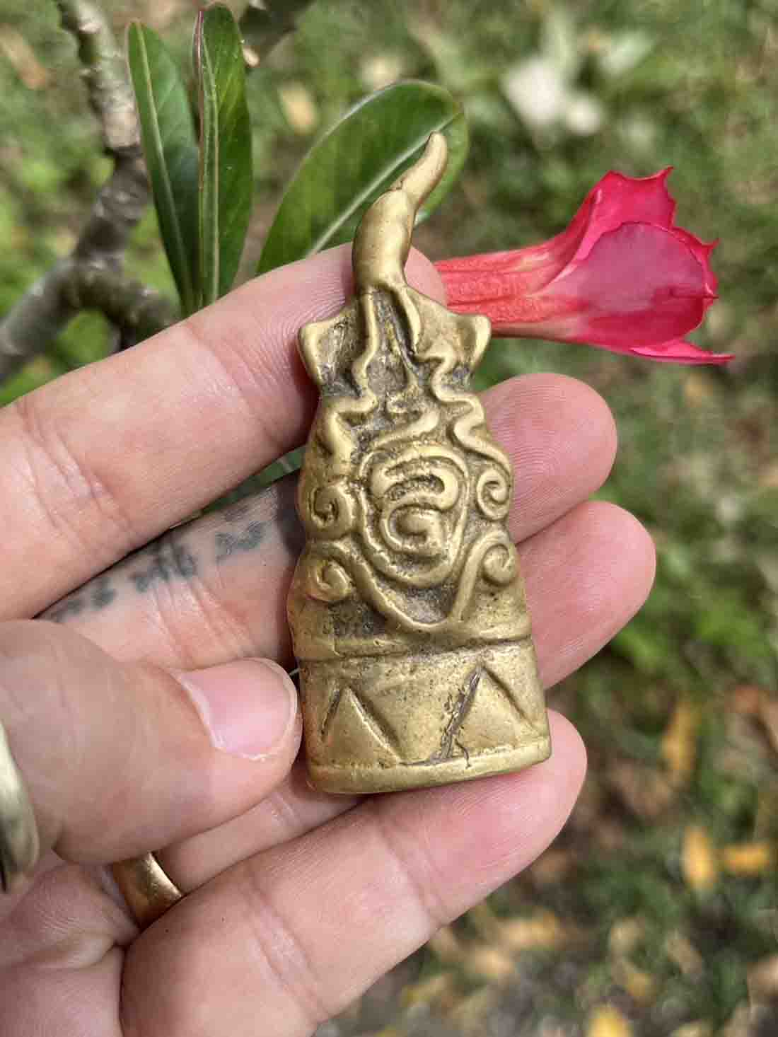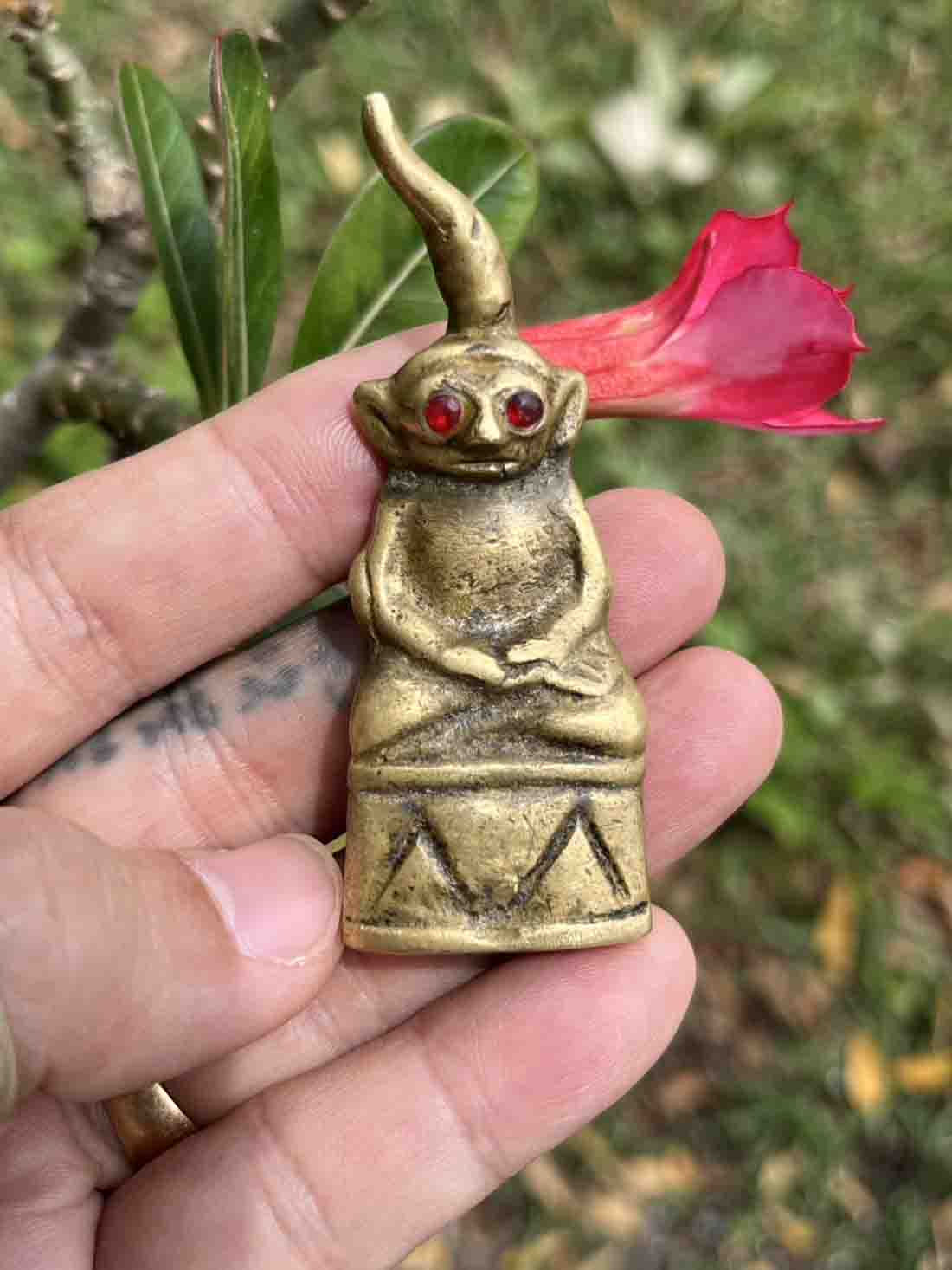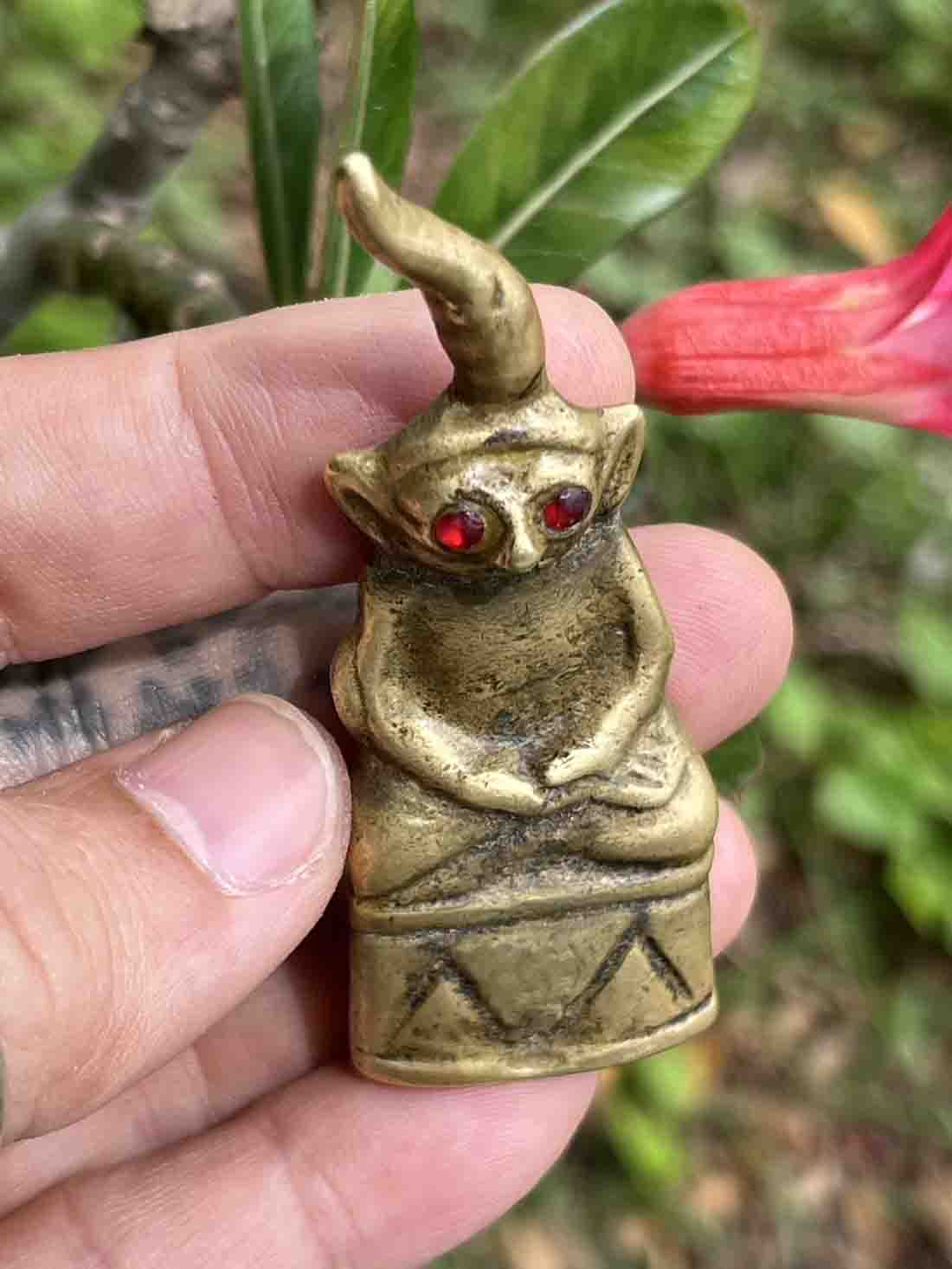 ผิวทองสัมฤทธิ์ ออกปรอท ตาแดงก่ำ ตาเดิมๆ เกศยาวสุดปลายล่ำๆ ยันต์หลัง ลีกชัดเจน สึกเนียนตามธรรมชาติทั้งองค์ กริ่งดำจาง ดังกังวาล ถูกต้องตามตำรา ๑๐๐ ปี ต้องมีแน่ ของบ้านๆ แท้ดูง่าย เรื่องเสน่ห์ โลกียะ สุดๆ พิมพ์นี้ อีกทั้งประสบการณ์ด้านป้องกันแคล้วคลาดก็มีครบ ไม่เป็นรองใครพิมพ์นี้ | [ ราคา ] ฿99999 [ สถานะ ] ขายแล้ว