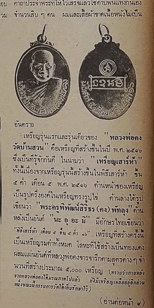 เหรียญ อ.คง วัดบ้านสวน รุ่นแรก เสาร์5 ปี2516