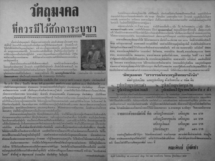 [ รายละเอียด ] เหรียญอาจารย์เอียด วัดดอนศาลา ปี2519 เนื้อทองแดง รุ่นนี้ในการสร้างครั้งแรกจากข้อมูลในเอกสารวัดเมื่อปี19นั้นระบุว่าเหรียญรุ่นนี้สร้างเมื่อปี2519 ข้อมูลจากในเอกสารวัดระบุไว้เมื่อปี19(ฉบับเอกสารวัด) ต่อมาพระครูกาชาดวัดดอนศาลาซึ่งเป็นเจ้าอาวาสในขณะนั้นท่านตั้งใจไว้ว่าจะปลุกเสกให้แล้วเส็จและแจกทันในวันทำบุญวันเกิดอาจารย์เอียดวันที่22 ก.พ 19 แต่ในปี19นั้นเตรียมงานไม่ทันฤกษ์ไม่เวลา ทางวัดจึงออกประกาศให้สั่งจองเหรียญในปี2519ไว้ก่อนเลยเพราะพระสร้างเส็จเรียบร้อยแล้ว โดยออกประกาศไว้ว่า(โปรดสั่งจองล่วงหน้า หากช้าจะหมดเพราะสร้างจำนวนจำกัด (ก็แสดงว่าพระได้สร้างเส็จไว้แล้ว)ตั้งแต่ปี2519 จากข้อมูลในเอกสารได้อ้างอิงไว้เมื่อปี19) **ครั้งแรกปี19ทำพิธีปลุกเศกในอุโบสถวัดดอนศาลาก่อนโดยมีศิษย์เขาอ้อหลายท่านด้วยกันปลุกเศกที่วัดดอนศาลาตลอดพรรษาในปี2519 ปลุกเศกมาเรื่อยๆก่อนที่จะพิธีปลุกอีกครั้งในวาระที่2 โดยออกเอกสารมาอีกครั้งนึงในปี20 พุทธาภิเศกอีกหนึ่งครั้งนี้ในเดือนกุมภาพันธ์ ปี2520ครั้งนี้โดยนี้มี อาจารย์ที่อาวุโสก็มีอ.ปาน วัดเขาอ้อเป็นประธานในพิธีในการปลุกเศก อ.หมุน วัดเขาแดงออกและพ่อท่านคลิ้งวัดถลุงทองเป็นต้น ทำพิธีพุทธา ภิเษกในวันทำบุญใหญ่ซึ่งตรงกับวันวันเกิดของอ.เอียดในวันที่ 22 ก.พ 20 และและอ.รอด วัดดอนศาลาได้มีการนำเหรียญอ.ปาน รุ่นแรกปี19 ปลุกเศกซ้ำอีกด้วยในพิธีนี้**สรุปได้ว่าเหรียญ อ.เอียด ปี2519 นั้นได้ทำการปลุกมาตั้งแต่ปี19 ปลุกเศกมาตลอด1ปีเต็มๆเลย ก่อนจะมาปลุกเศกเข้าพิธีใหญ่พิธีพุทธาภิเษกในปี2520 ตามใบประกาศปี2520 เหรียญรุ่นนี้ได้มีการนำเอาชนวนโลหะศักดิ์สิทธิ์รุ่นเก่าๆ จำนวนมากมาหลอมเป็นเนื้อเหรียญ ตะกรุดเก่าและชนวนเก่าที่วัดเก็บไว้มากมายประมาณ 1 ขัน ได้มีการประทับยันต์ 108 ตอนทำพิธีหลอมแผ่าชนยันต์ ก็มีการทำพิธีทางไสยศาสตร์ บูชาครู สวดชยันโตโดยท่านพระครูกาชาดดำเนินการเองที่โรงงานจนเสร็จพิธี เหรียญมาเป็นชุด ทองแดง ทองแดงกะไหล่เงินและเนื้อเงิน พระอาจารย์ปาล วัดเขาอ้อ ได้รับนิมนต์เข้าเป็นองค์ประธานปลุกเสกเหรียญพระอาจารย์เอียด ปี 2519 ในครั้งนี้พระครูกาชาด ได้นิมนต์เกจิอาจารย์ที่มีชื่อเสียงเข้าร่วมพุทธาพิเศษหลายองค์ด้วย อาทิเช่น อาจารย์หมุน วัดเขาแดงตะวันออก พ่อท่านคลิ้ง วัดถลุงทอง อาตารย์ศรีเงิน วัดดอนศาลา พ่อท่านแสง วัดคลองน้ำเจ็ด ฯลฯ เป็นต้น นับได้ว่าเป็นเหรียญรุ่นหนึ่งที่มีประสบการณ์มาก ควรสะสม ดีทั้งเนื้อหาและดีทั้งพิธีในการจัดสร้าง +++รายการจัดสร้างพระครูสิทธยาภิรัต จัดทำร