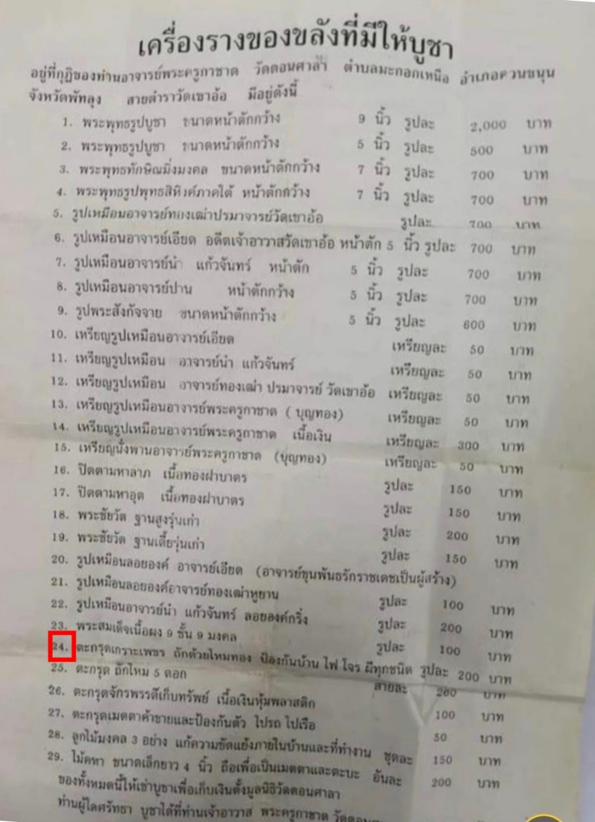 วัตถุมงคงคล อ.ช่วง วัดควนปันตาราม จ.พัทลุง