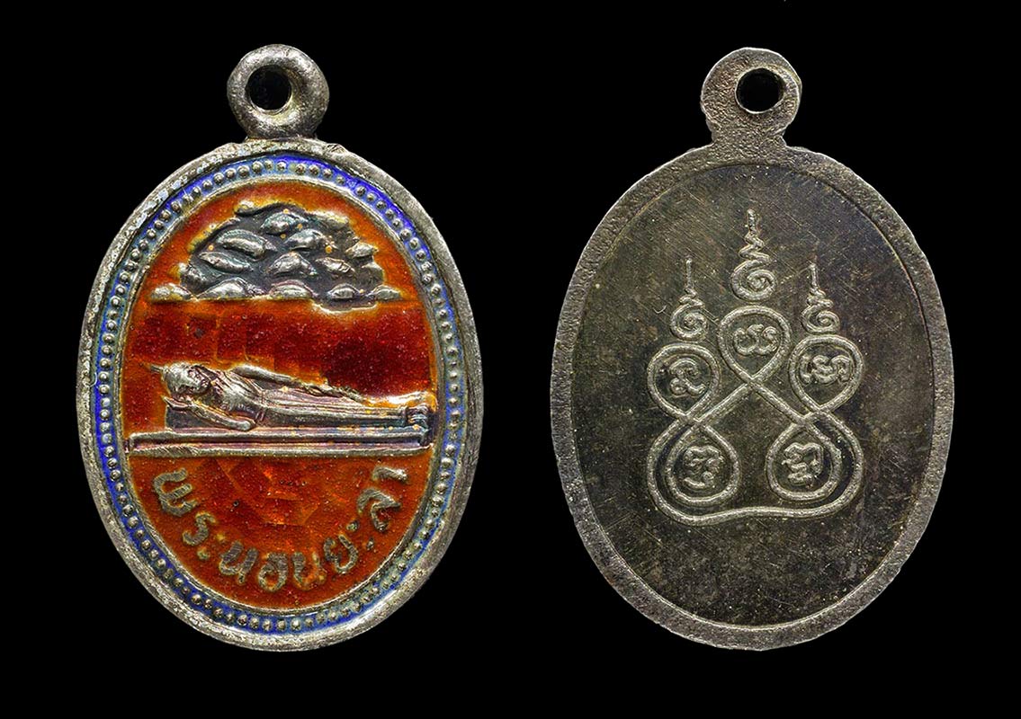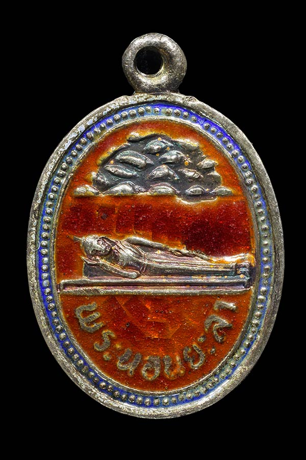 เหรียญพระนอน วัดถ้ำยะลา เนื้อเงินลงยา ปี93