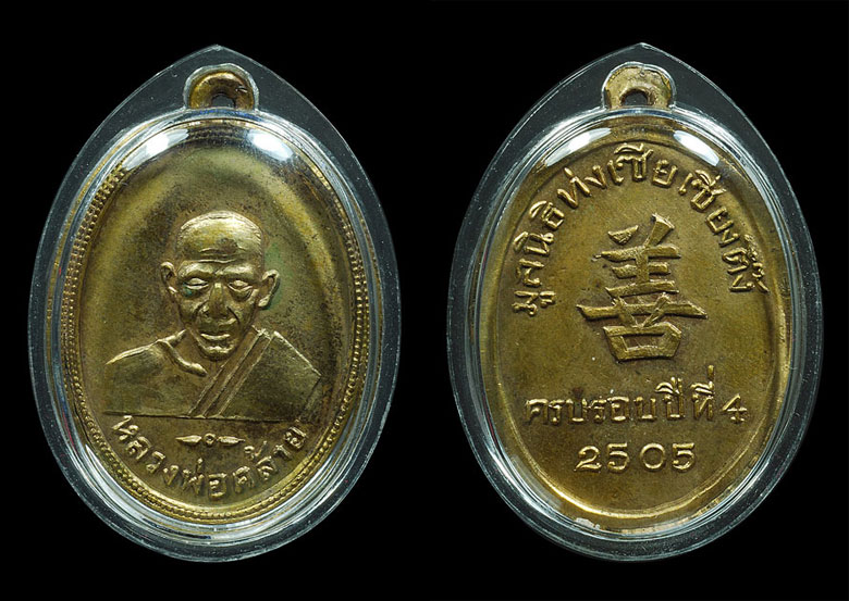 [ ชื่อพระ ] เหรียญพ่อท่านคล้าย วาจาสิทธิ์ มูลนิธิท่งเซียเซี่ยงตึ๊ง กะไหล่ทอง