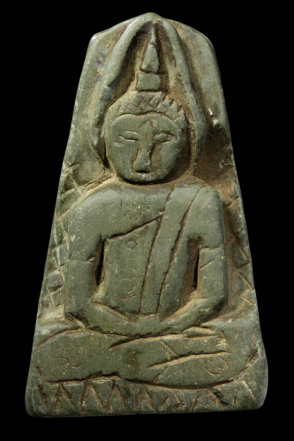 [ ชื่อพระ ] หินแกะเก่าเป็นพิมพ์พระพุทธ 2 หน้า จารทั้งองค์ครับ