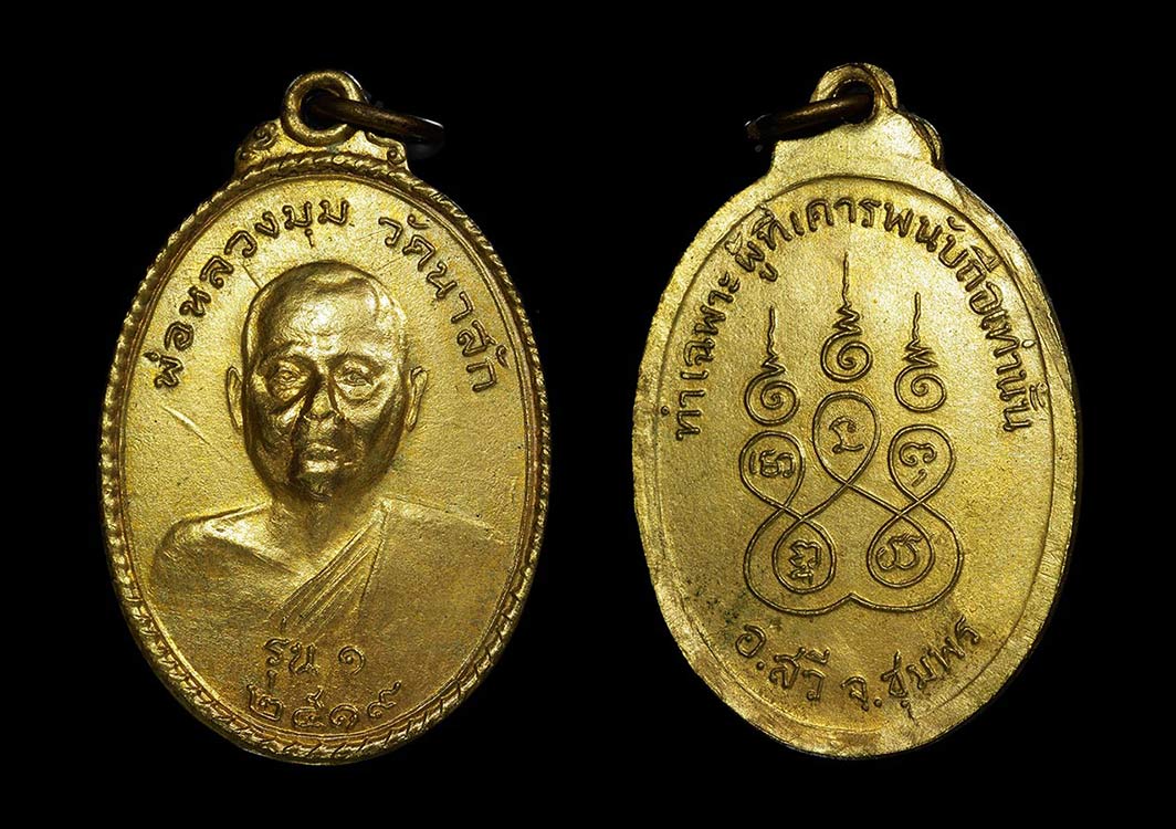 เหรียญหลวงพ่อมุม วัดนาสัก รุ่นแรก กะไหล่ทอง สวย