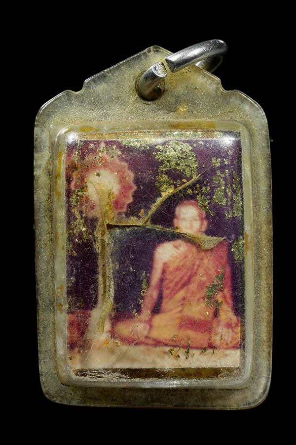 รูปถ่ายหลวงพ่อน้อย วัดธรรมศาลา นครปฐม ด้านหลังมีตะกรุด เลี่ยมเก่า