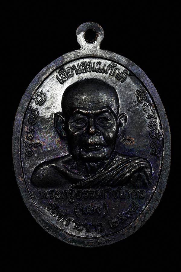 เหรียญเลื่อนสมณศักดิ์ อาจารย์นอง วัดทรายขาว เนื้อทองแดงรมดำ
