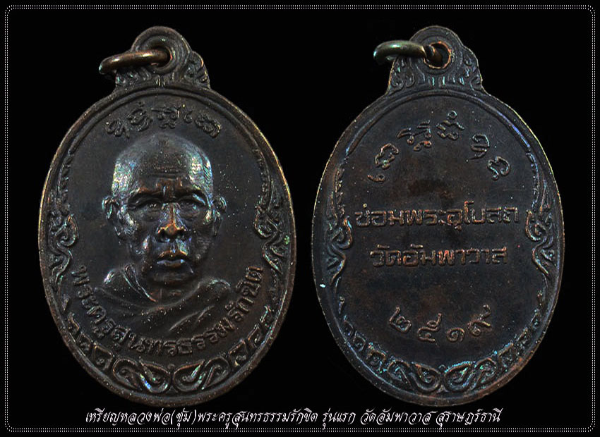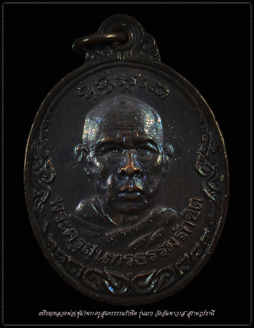 เหรียญหลวงพ่อพุ่ม วัดตรณาราม รุ่นแรก สุราษฎร์ธานี(รมดำ)