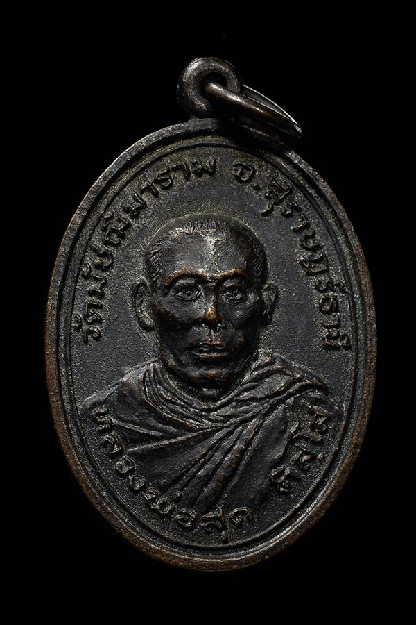 เหรียญรุ่นแรกหลวงพ่อสุด วัดหนองหวาย เนื้อทองแดงรมดำ จ.สุราษฎร์ธานี ปี 2519