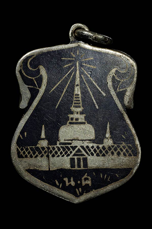 เหรียญพระธาตุนครฯ เนื้อเงินลงถม ปี97 น.ศ.