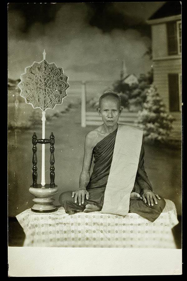 รูปถ่ายหลวงพ่อน้อย วัดธรรมศาลา นครปฐม ด้านหลังมีตะกรุด เลี่ยมเก่า