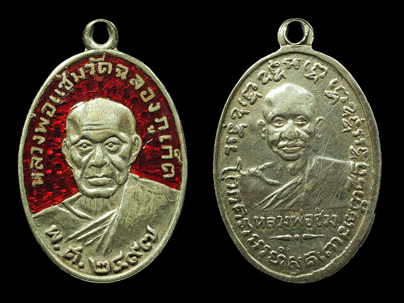 [ รายละเอียด ] หลวงพ่อแช่ม-ช่วง เงินลงยาแดง ช.ชิด ปี2497 หายาก