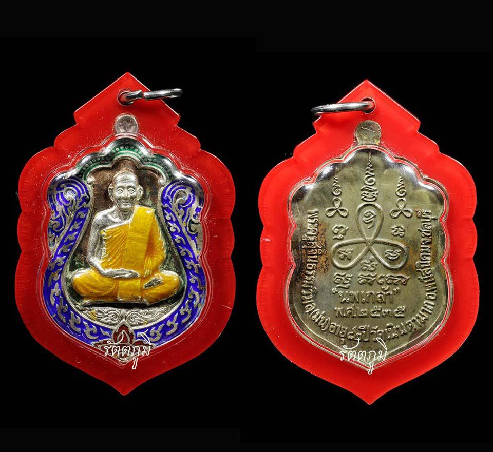 [ รายละเอียด ] เหรียญเสมาฉลุลงยา รุ่นนพเกล้า (เหรียญไฟฟ้า) พ.ศ. 2536 หน้าเงินหลังนวะ สร้างน้อย 1,000 องค์ เหรียญประสบการณ์ สภาพสวย เหรียญหลักของเกจิดังแห่งเมืองชล