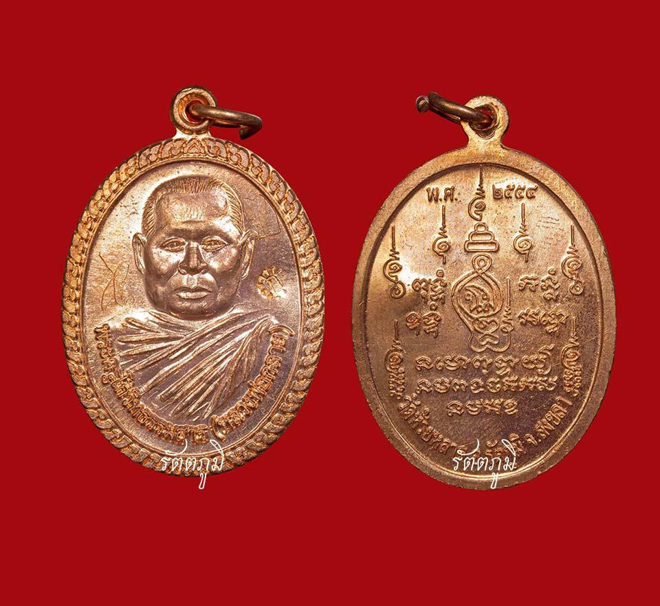 | | [ ชื่อพระ ] เหรียญรุ่นแรก ลพ.กลาย วัดห้วยหลาด ปี 2554 ทองแดงผิวไฟ | | [ รายละเอียด ] เหรียญรุ่นแรกท่านพระครูโกวิทธรรมสาร (ลพ.กลาย โกวิทโธ) เจ้าอาวาสรูปที่ 5 ของวัดห้วยหลาด และเจ้าคณะอำเภอรัตภูมิ จ.สงขลา สร้างจำนวน 5,000 เหรียญ แบ่งเป็นเนื้อทองแดงผิวไฟ 2,500 เหรียญ และเนื้อทองแดงรมดำ 2,500 เหรียญ สร้างด้วยทุนส่วนตัวของท่าน เพื่อไว้แจกลูกศิษย์ลูกหา (ไม่มีการตั้งราคาบูชาหรือที่เรียกภาษาชาวบ้านว่า """แจกฟรี""") ท่านออกแบบเหรียญเองทั้งหมดโดยใช้ภาพถ่ายในกุฏิ (ตามภาพด้านบนที่แสดงไว้) เป็นแบบ และให้ช่างทำการแกะบล็อกเมื่อช่วงเดือนธันวาคม 2553 มกราคม 2554 จนเสร็จสมบูรณ์เมื่อเดือนกุมภาพันธ์ 2554 หลวงพ่อปลุกเสกเดี่ยวทุกวันตั้งแต่เดือนกุมภาพันธ์ 2554 ตั้งแต่ตื่นทำวัตรเช้าช่วงเวลาตี 4 จนถึง 7 โมงก่อนฉันเข้า และปลุกเสกเดี่ยวครั้งสุดท้ายวันเสาร์ 5 เดือนเมษายน 2554 ช่วงเวลา 20.00 น. 21.39 น. แจกครั้งแรกในงานฌาปนกิจศพของญาติโยมที่อาศัยอยู่ใกล้วัด แจกครั้งที่ 2 ในคืนเวียนเทียนวันวิสาขบูชา ปี 2554 (ช่วงกลางวันมีพิธีไหว้ครูและลอดซุ้มประตูป่า) ภายหลังลูกศิษย์ได้นำโค้ดที่พระอาจารย์คลังแสงมอบให้มาถวาย จึงได้มีการตอกโค้ด ก มีรัศมี 1 ตัว บริเวณเหนือบ่าซ้าย จำนวน 154 เหรียญ เนื้อละ 77 เหรียญ สำหรับบล็อกเหรียญและตัวตอกโค้ดทำลายเรียบร้อยแล้ว (ท่านคือหนึ่งในเกจิที่ร่วมสร้างและปลุกเสกเหรียญหลวงปู่สีมั่นที่ออกโดยวัดห้วยหลาดทั้ง 4 รุ่น ตั้งแต่รุ่นแรก ปี 09 สำหรับแจกทหารไทย-ลาวที่ร่วมรบในสมรภูมิเวียดนาม, ปี 17, ปี 37 และรุ่นล่าสุด คือ รุ่นบูรณอุโบสถ 50) โดยส่วนตัวท่านคือพระอุปัชฌาอาจารย์ที่ครอบครัวและกระผมให้ความเคารพนับถืออย่างสูง ด้วยปฏิปทาที่น่าเลื่อมใส กราบไหว้ได้สนิทใจ เปี่ยมไปด้วยเมตตา สำหรับประวัติของท่านสามารถคลิ๊กเข้าไปอ่านที่แถบเมนู ประวัติหลวงพ่อกลาย วัดห้วยหลาด ในหน้าหลักของทางร้านรัตตภูมิได้ และหากท่านใดมีโอกาสแวะเวียนไปรัตภูมิก็ลองเข้าไปสัมผัสได้ด้วยตนเองในสิ่งที่ผมกล่าวมา ซึ่งปัจจุบันเหรียญรุ่นแรกทั้ง 2 แบบของท่านแจกจ่ายหมดแล้ว +++ โดยล่าสุด!!! เกิดประสบการณ์เป็นที่เลื่องลือในพื้นที อ.รัตภูมิ จากการที่เด็กวัยรุ่นขับรถมอเตอร์ไซต์ถูกรถยนต์ชนอย่างจังจนกระเด็นไปหลายสิบเมตร บริเวณหน้าปั๊ม ปตท. จนคนขับไม่กล้าลงจากรถไปดู เพราะคิดว่าคู่กรณีต้องตายแน่นอน ปรากฏว่าเด็กวัยรุ่นคนดังกล่าวลุกขึ้นมานั่งบนฟุตบาตด้วยตนเองอย่างสบาย มีแผลถลอกเพียงเล็กน้อย เมื่อไปถึงโรงพยาบาลรัตภูมิ ปรากฎว่าเจ้าหน้าที่และประชาชนที่เห็นเหตุการณ์รู้สึกแปลกใจและเข้ามาสอบถามว