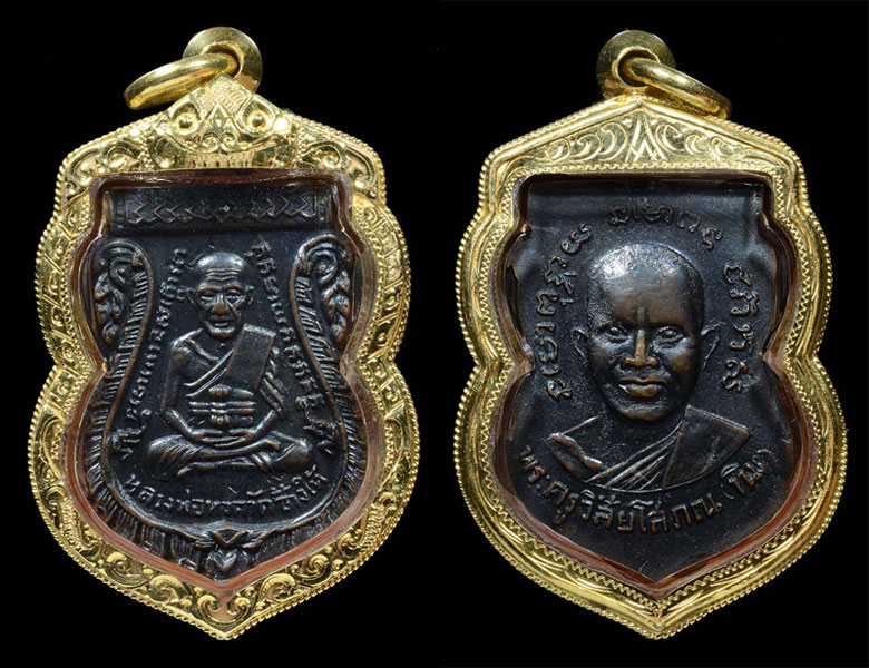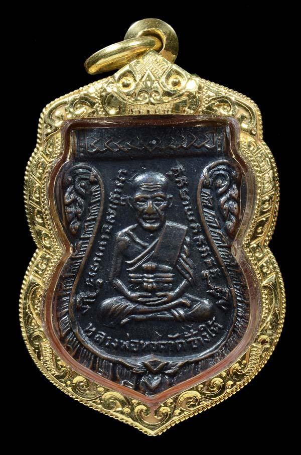 หลวงพ่อทวด วัดช้างให้ พิมพ์กลีบบัว  เนื้อทองเหลืองรมดำ รุ่น ร.ศ.200 ปี 2525.