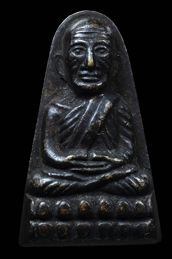 พระกลีบบัวหลวงพ่อทวด วัดช้างให้ รุน1 ปี2507 เนื้อทองเหลืองรมดำ ..(2)