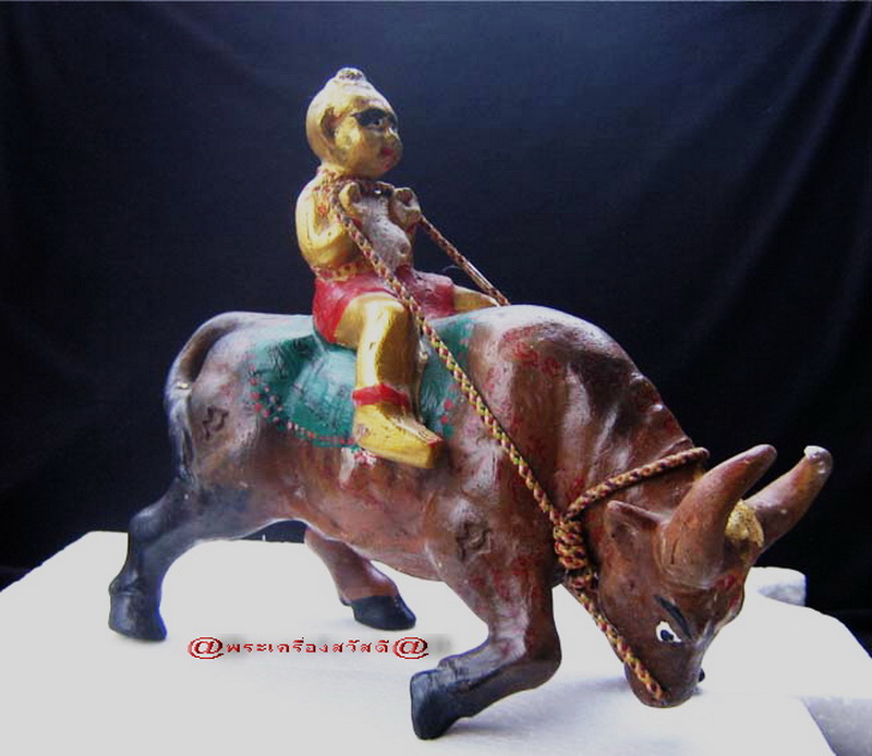 | | [ ชื่อพระ ] กุมารทองขี่วัว หลวงปู่แย้ม | | [ รายละเอียด ] กุมารทองขี่วัว หลวงปู่แย้ม วัดสามง่าม จัดได้ว่าเป็นรุ่นแรกที่ท่านสร้างแบบพิเศษที่มีทั้งวัวธนู และ กุมารทอง ดูเข้มขลังไปอีกแบบ สร้างประมาณปี 49 เนื้อดินอาถรรพณ์(7 ป.ช.) โดยส่วนตัวสะสมวัวธนูมาก็เยอะที่เห็นแปลกก็มีของหลวงปู่แย้มนี่แหละ วัวธนูมีทั้งรูทวาร ตอกโค๊ด ลงอักขระครบสูตร อาการ 32 เสมือนวัวถ้าวิ่งได้คงวิ่งไปเลย ปัจจุบันหาชมของแท้ๆ ค่อนข้างยาก สร้างประมาณ 200 องค์เองไม่มีทำเพิ่มเสริม องค์นี้เป็นชุดแรก ๆ จึงไม่มีการทาทอง ทำให้ดูเห็นเนื้อดินกระดูก ได้ชัดเจน บอกได้คำเดียวว่าสุดยอดครับท่านเพราะว่าองค์นี้นำไปให้หลวงปู่แย้มท่านเพิ่ม พลัง(เรียกจิต) มาสองครั้งแล้ว . | [ ราคา ] ฿9 [ สถานะ ] โชว์พระ