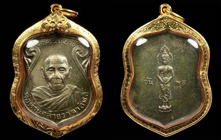[ ชื่อพระ ] เหรียญพระประจำวัน พุธ พ่อท่านคล้าย วัดหน้าพระธาตุ เนื้ออัลปาก้าเปลือยเลี่ยมทองพร้อมใช้