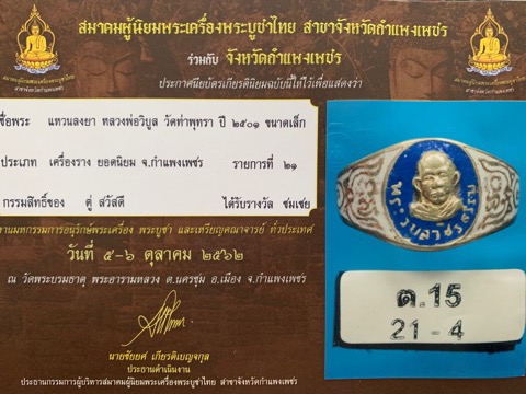 | | [ ชื่อพระ ] แหวนรุ่นแรก ปี 2501 พระครูวิบูลวชิรธรรม (๒) | | [ รายละเอียด ] สถานะ "แชมป์รางวัลที่ ๔ งานประกวดพระ ๕-๖ ตุลาคม ๒๕๖๒ วัดพระบรมธาตุ กำแพงเพชร" แหวนลงยารุ่นแรก ปี 2501 พระครูวิบูลวชิรธรรม หรือ หลวงพ่อสว่าง วัดท่าพุทรา เจ้าตำรับเหรียญปลอดภัย ที่ลูกศิษย์ต่างหวงแหน และมากไปด้วยประสบการณ์ ของ จ.กำแพงเพชร สภาพงามๆครับ แบบนี้หาเจอยากครับท่าน | [ ราคา ] ฿9 [ สถานะ ] โชว์พระ