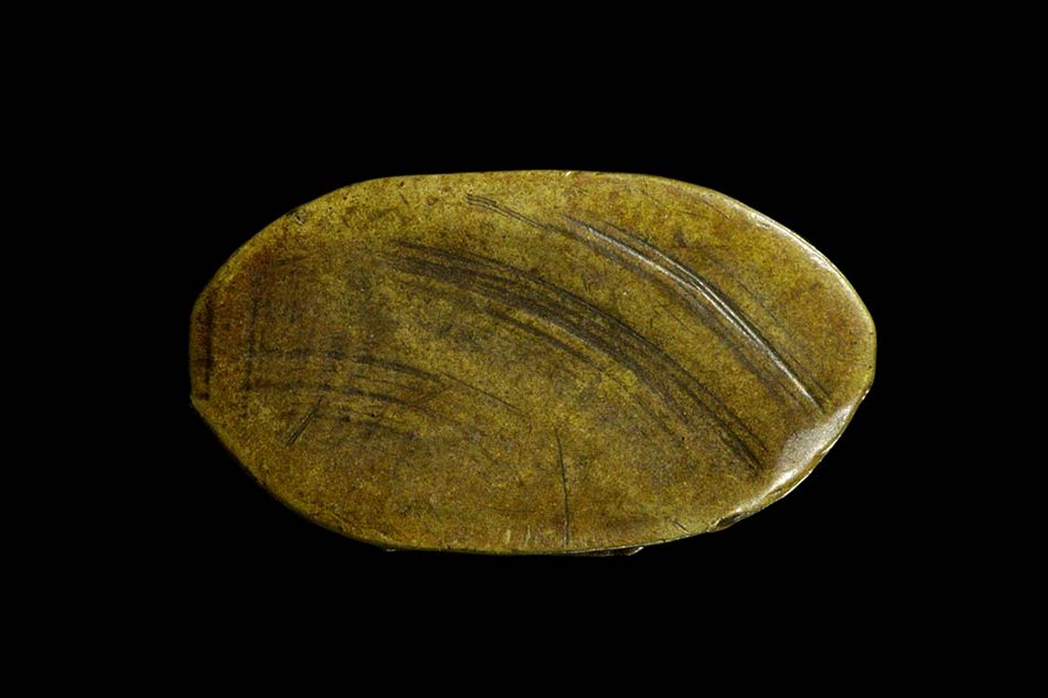 หินแกะเก่าเป็นพิมพ์พระพุทธ 2 หน้า จารทั้งองค์ครับ