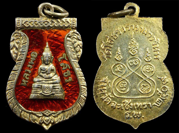 เหรียญอาร์มเนื้อเงินลงยาสีแดง หลวงพ่อโสธร ปี ๒๕๐๗ (หูตัด)