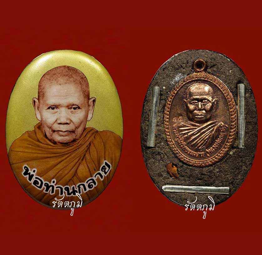 [ รายละเอียด ] ล็อกเก๊ตฉากทองคำแท้ขนาดจัมโบ้พิเศษ ท่านพระครูโกวิทธรรมสาร หรือพ่อท่านกลาย โกวิโท เจ้าอาวาสวัดห้วยหลาด และเจ้าคณะอำเภอรัตภูมิ จังหวัดสงขลา คณะลูกศิษย์ที่เป็นลูกหลานขออนุญาตจัดสร้างโดยขอคำแนะนำจากหลวงพ่อทุกขั้นตอน วัตถุประสงค์เพื่อนำรายได้หลังจากหักค่าใช้จ่ายสบทบทุนสร้างหอพระไตรปิฎกและพิพิธภัณฑ์ของวัดห้วยหลาด ซึ่งต้องใช้งบประมาณในการก่อสร้างไม่ต่ำกว่า ๑,๑๐๐,๐๐๐ บาท ด้วยการบอกบุญและช่วยกันลงขันเพื่อเป็นทุนจัดสร้างจำนวนการสร้าง ๘๐ องค์ ด้านหลังอุดมวลสารศักดิ์สิทธิ์ที่หลวงพ่อปลุกเสกเดี่ยวทุกวันเป็นแรมเดือน ได้แก่ ผงว่าน ๑๐๘ ชนิด ผสมเส้นเกสา ผงรูปเหมือนรุ่นแรก และสมเด็จโพธิบัลลังค์ ฝังเหรียญรุ่นแรกผิวไฟหลวงพ่อจารมือ จีวร และตะกรุดเงิน ๓ ดอก แต่ละดอกจารยันต์ด้วยมือ ๓ แบบ คือ ๑.แคล้วคลาด ๒.เมตตา และ ๓.มหาอุตม์ ตอกโค้ดหมายเลขบนเหรียญ และออกใบอนุโมทนาบัตรแบบพิเศษกำกับหมายเลขล็อกเก๊ตทุกองค์ ๑ องค์ต่อ ๑ ใบ โดยแจกพร้อมภาพถ่ายรุ่นแรกแบบพิเศษ สำหรับล็อกเก๊ตและภาพถ่ายรุ่นแรกพ่อท่านกลายชุดนี้ พ่อท่านกลายได้เมตตาปลุกเสกมวลสารเป็นเวลาแรมเดือนและอธิษฐานจิตปลุกเสกเดี่ยวอย่างเข้มขลังอีกครั้งภายในกุฏิ จนวัตถุมงคลเปี่ยมไปด้วยพุทธคุณครบด้านทั้งแคล้วคลาด เมตตา และมหาอุตม์