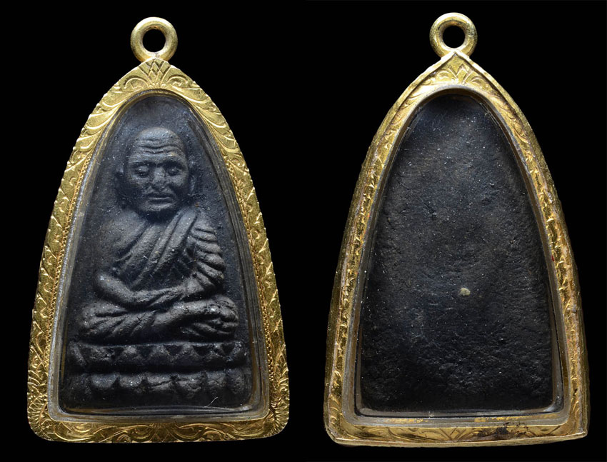 พระกลีบบัวหลวงพ่อทวด วัดช้างให้ รุน1 ปี2507 เนื้อทองเหลืองรมดำ ..(2)