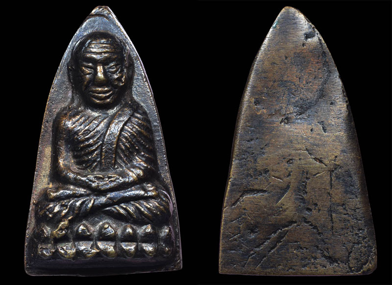 พระกลีบบัวหลวงพ่อทวด วัดช้างให้ รุน1 ปี2507 เนื้อทองเหลืองรมดำ ..(2)