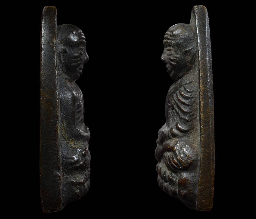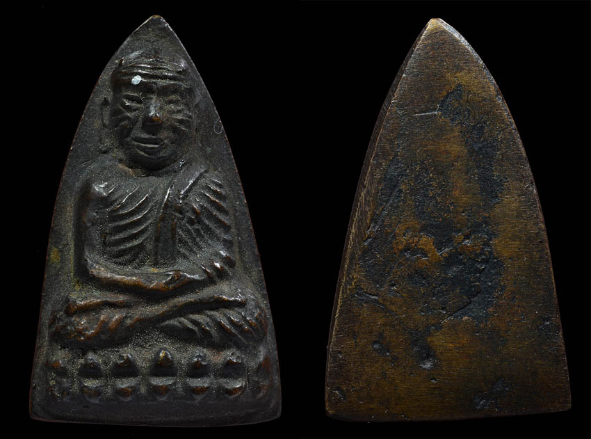 พระกลีบบัวหลวงพ่อทวด วัดช้างให้ รุน1 ปี2507 เนื้อทองเหลืองรมดำ ..(2)