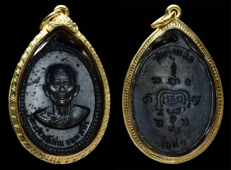 พระรูปเหมือนปั้มพ่อท่านแก่น วัดทุ่งหล่อ รุ่นแรก กะไหล่ทองสวยเดิมๆ