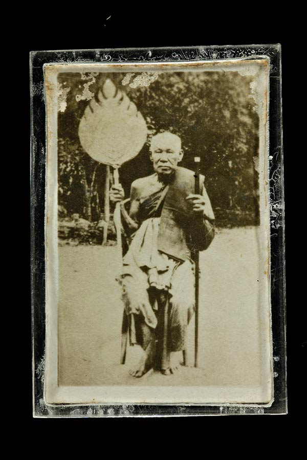 รูปถ่ายหลวงพ่อน้อย วัดธรรมศาลา นครปฐม ด้านหลังมีตะกรุด เลี่ยมเก่า