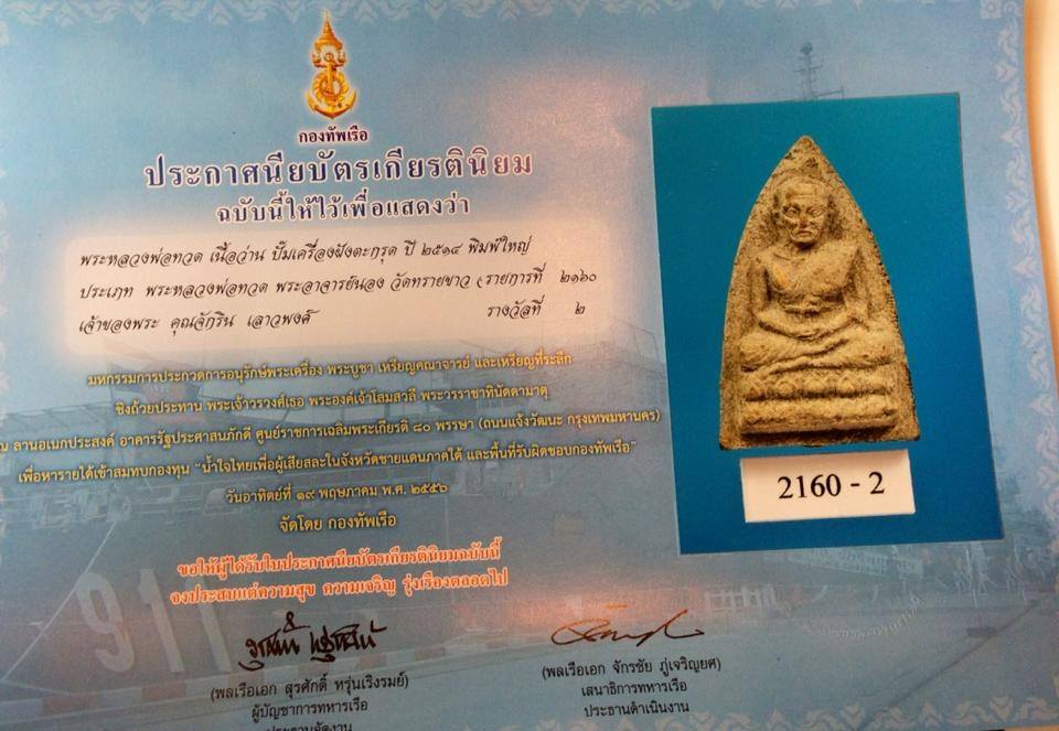 [ รายละเอียด ] (รางวัลรองชนะเลิศ งานกองทัพเรือ ศูนย์ราชการแจ้งวัฒนะ วันที่ ๑๙/๐๕/๒๕๕๖) หลวงพ่อทวด พระอาจารย์นอง วัดทรายขาว ปัตตานี ปี ๑๔ (พิมพ์ใหญ่ ปั๊มเครื่อง) โดยเป็นการสร้างพระพิมพ์หลวงพ่อทวด ที่เป็นรุ่นแรกของวัดทรายขาวอย่างเป็นทางการในปี ๒๕๑๔ ซึ่งวัตุมงคลหลวงพ่อทวดชุดนี้ พระอาจารย์ทิมได้มาเข้านิมิตแก่ พระอาจารย์นอง ว่า "หากท่านไม่สร้างแล้วใครจะสร้าง ท่านควรสร้างได้แล้ว" จึงนับเป็นวัตถุมงคลที่ควรค่าแก่การเสาะหาเป็นอย่างยิ่ง พระพิมพ์นี้ทุกองค์ได้ฝังตะกรุดนารายณ์แปลงรูป ที่สร้างชื่อให้ พระอาจารย์นอง ไว้ใต้ฐาน สุดยอดจริงๆ กับสภาพแชมป์ๆ แบบนี้