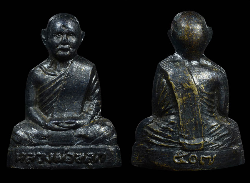 [ รายละเอียด ] รูปเหมือนปั๊มหลวงพ่อขลุก วัดเทวดาราม รุ่นแรก ปี2507 สิชล นครศรีธรรมราช สภาพสวยเดิมๆ รมดำ พระน่าใช้ มีประสบการณ์อีกองค์หนึ่งของเมือนคอนครับ ใต้ฐานอุดกริ่งเขย่าเสียงดังครับ หายากแล้วครับน่าสะสมมากครับผม
