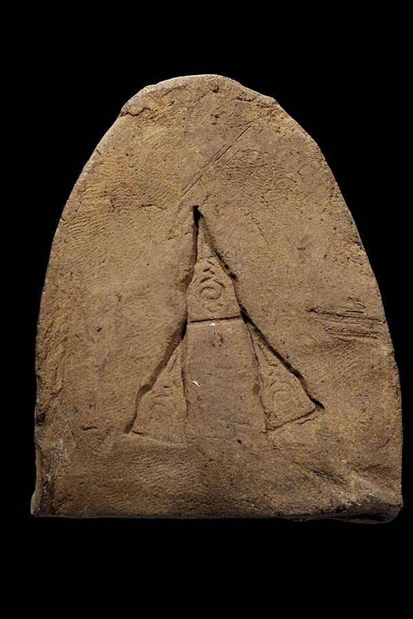 หินแกะเก่าเป็นพิมพ์พระพุทธ 2 หน้า จารทั้งองค์ครับ