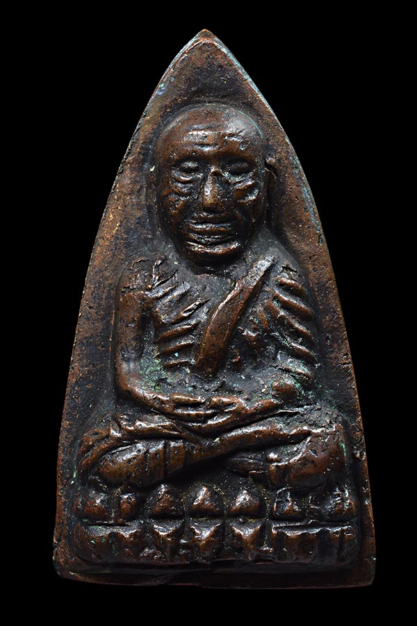 พระกลีบบัวหลวงพ่อทวด วัดช้างให้ รุน1 ปี2507 เนื้อทองเหลืองรมดำ ..(2)