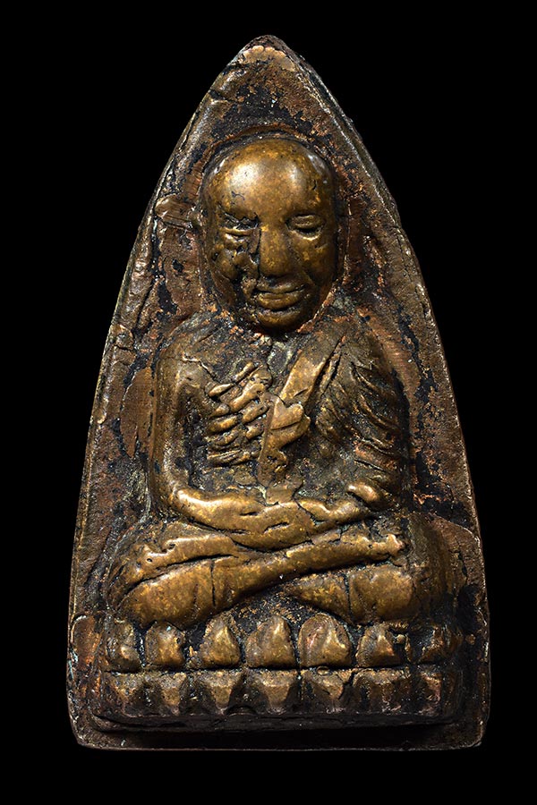 พระกลีบบัวหลวงพ่อทวด วัดช้างให้ รุน1 ปี2507 เนื้อทองเหลืองรมดำ ..(2)