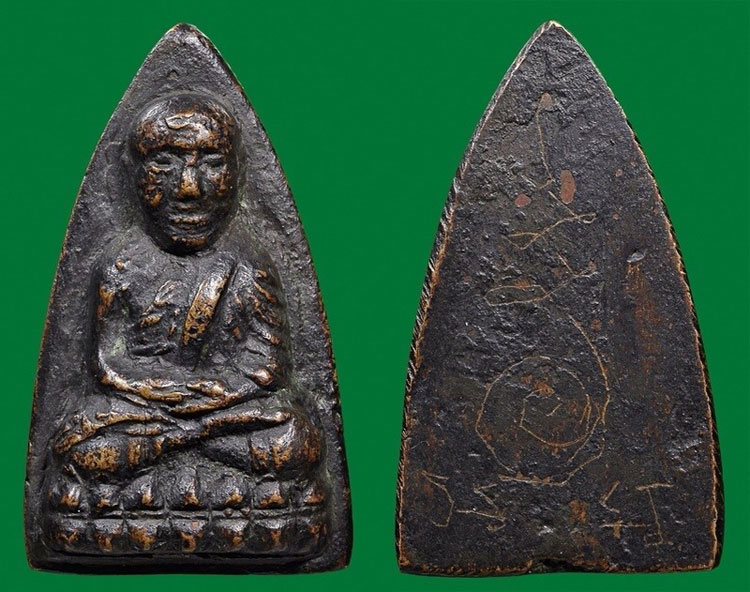 พระกลีบบัวหลวงพ่อทวด วัดช้างให้ รุน1 ปี2507 เนื้อทองเหลืองรมดำ ..(2)