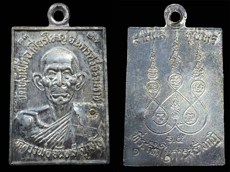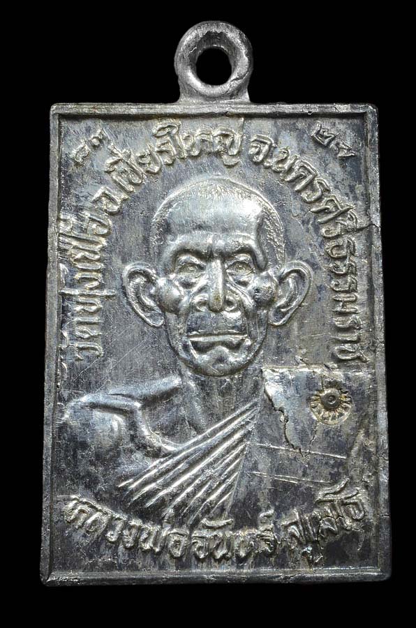 เหรียญสี่เหลี่ยม พ่อท่านจันทร์ วัดทุ่งเฟื้อ รุ่น ลาถผลพูนทวี เนื้อเงิน
