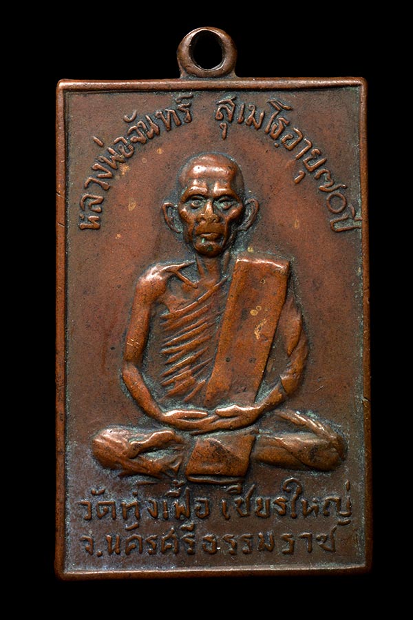 เหรียญสี่เหลี่ยม พ่อท่านจันทร์ วัดทุ่งเฟื้อ รุ่นแรก ปี2513 เนื้อทองแดง