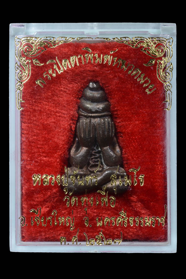 [ ชื่อพระ ] พระปิดตาหัวมวย พ่อท่านจันทร์ วัดทุ่งเฟื้อ ปี 2527 เนื้อนวะโลหะ