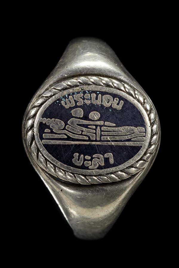 [ ชื่อพระ ] แหวนพระนอนยะลา เนื้อเงินลงถม