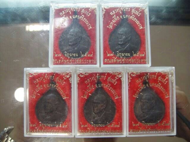 เหรียญสี่เหลี่ยม พ่อท่านจันทร์ วัดทุ่งเฟื้อ ปี2529 (5 เหรียญ)