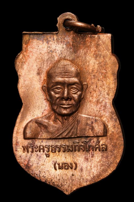 เหรียญเลื่อนสมณศักดิ์ หลวงปู่ทวด อาจารย์นอง วัดทรายขาว ปี 2538 เนื้อทองแดงรมดำ.(5