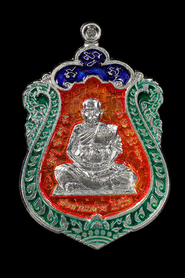 เหรียญเสมา พ่อท่านกลาย วัดห้วยหลาด รุ่นยกฐานะ เนื้อเงินลงยาสีแดง