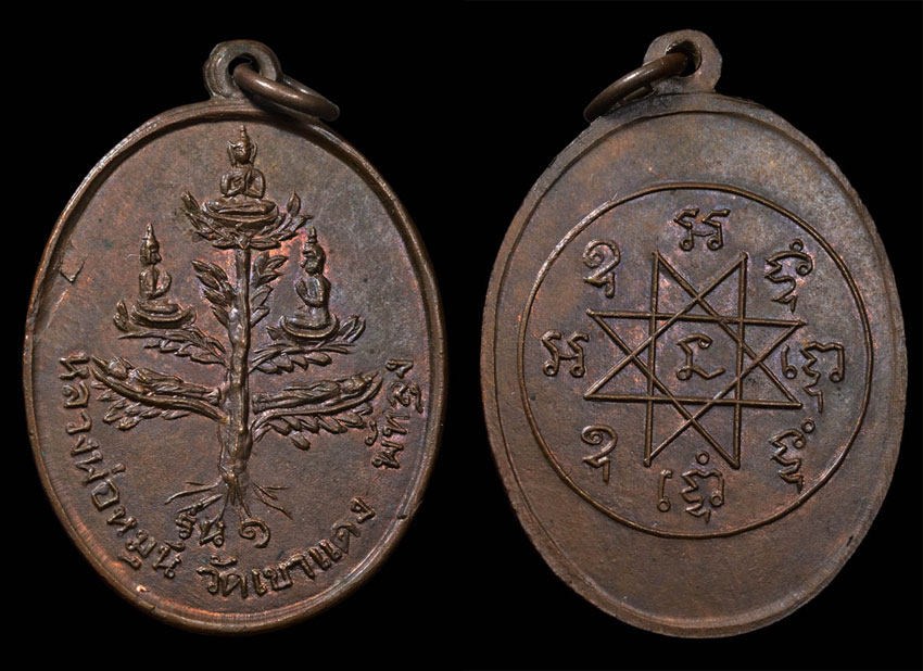 เหรียญพระเจ้าห้าพระองค์ อาจารย์หมุน วัดเขาแดงตะวันออก  ""เหรียญต้นไม้""
