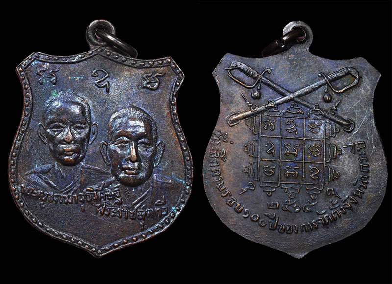 เหรียญสองอาจารย์ ฉลองครบ 100 ปี จังหวัดกระบี่ ปี 2515 วัดแก้วโกรวาราม อ.เมือง จ.กระบี่