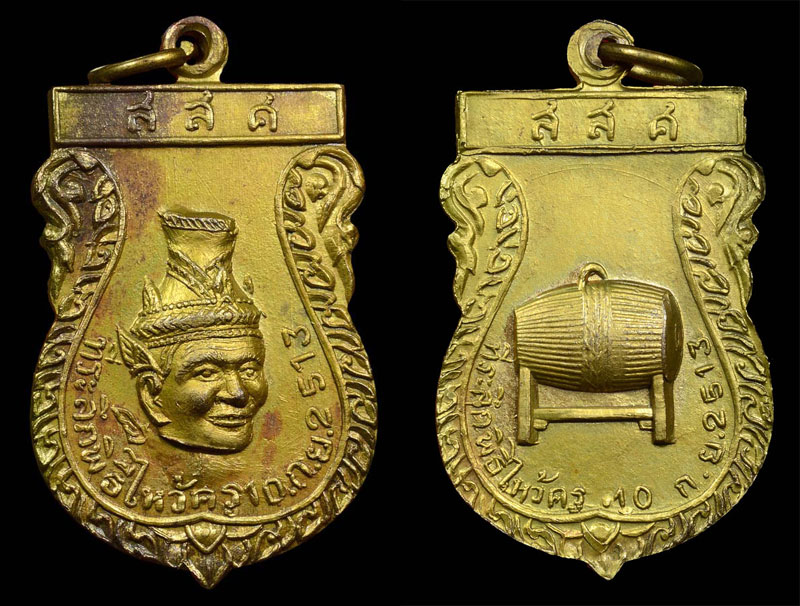 [ ชื่อพระ ] เหรียญพ่อแก่ วัดใหม่พิเรนทร์ รุ่นแรก บล็อกนิยม ปี 2513 เนื้อทองแดงกะไหล่ทอง
