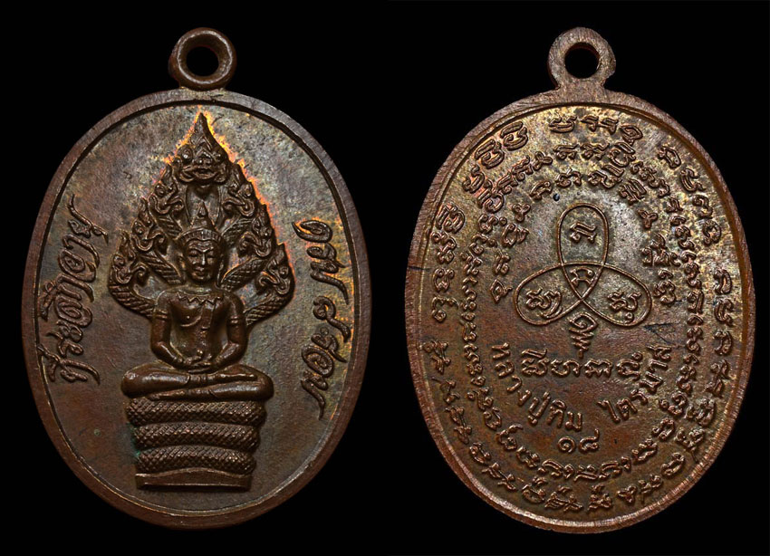 เหรียญอายุยืนครึ่งองค์ หลวงปู่สี วัดเขาถ้ำบุญนาค เนื้อทองแดง ปี2517