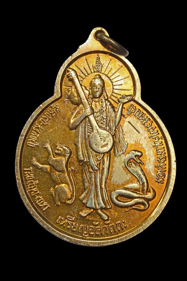 [ รายละเอียด ] เหรียญอัศวัตถะ (จักรเพชร 2) วัดดอนยานนาวา ก.ท.ม ปี 2535 เนื้อฝาบาตร กะไหล่ทอง "........ภายหลังปี 2509 ที่สามเณรวิรัช ได้ลาสิกขาเป็นฆราวาส และละสังขารไปแล้ว องค์สมเด็จบรมครูท้าวมหาพรหมธาดา ได้มอบภาระต่อให้กับท่านอาจารย์นาร โษตมะ (อาจารย์พ่อวินิจ ลุปต์ซ่า) ซึ่งได้ก่อตั้ง สำนักค้นคว้าสัจจะธรรมปุรุโษตมะ เมื่อปี 2533 ที่ย่านกิ่งแก้ว บางพลี สมุทรปราการ และดำริที่จะจัดสร้างเหรียญจักรเพชร รุ่น 2 โดยใช้ชื่อว่า อัศวัตถะ มีรูปทรงคล้ายน้ำเต้า ด้านหน้าเป็นรูปท้าวมหาพรหมธาดา ส่วนด้านหลังเป็นรูปฤษี นารอท ยืนถือพิณน้ำเต้า และกรับคัมภีร์ ด้านบนสุดของเหรียญเป็นตัว "นะ" หัวขมวด พร้อมรัศมีแฉกรายล้อมรูปเสือและงู ขนาบข้างซ้ายขวาด้วยอักษร "พรหมิ" โดยคำว่า "อัศวัตถะ" นั้นเป็นชื่อของต้นไม้ชนิดหนึ่งที่ไม่มีใครเคยเห็น ไม่สามารถจับต้องได้ มีความเป็นอมตะ รากอยู่บนสวรรค์ กิ่งอยู่เบื้องล่าง มีใบเป็นพระเวท ผู้ใดรู้จักย่อมเป็นผู้รู้จักพระเวท ซึ่งมีคุณอันยิ่งใหญ่ประกอบด้วย สัตวะ รชะ ตมะ พุทธานุภาพเฉกเช่นเหรียญจักรเพชรทุกประการแต่ราคาค่าบูชาย่อมเยากว่า