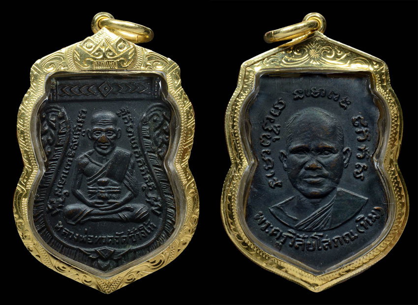 พระกลีบบัวหลวงพ่อทวด วัดช้างให้ รุน1 ปี2507 เนื้อทองเหลืองรมดำ..(4)